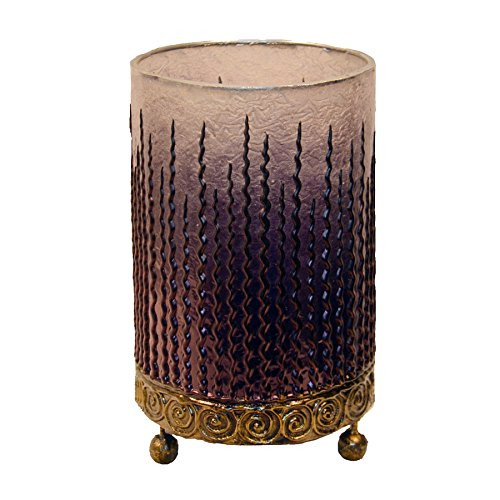 This lamp is a really useful size and will happily sit on the smallest table. Made from a cylinder of fibreglass in graduating colours; dark purple at the base, ending in light purple tones at the top. Black metal waves decorate the surface, and the lamp sits on a scroll base of antiqued gold metal and bun feet. Uses a standard household B22 bayonet fitting light bulb. Supplied complete with 2 metres of black electrical cable, in line rocker switch, a three pin plug and a standard 22mm bayonet cap lamp holder. All electrical components are sourced and fitted in the UK and comply with BS EN 61184; 1195 (BS 5742) regulations. This is a craft made product, sizes may vary slightly. Safety info: For indoor use only. We recommend the use of energy-saving lamp.Takes a standard energy B22 bayonet candle light or golf ball bulb max 7 watts,(not Supplied). If an incandescent bulb is used then the maximum wattage must not exceed 25w maximum. Our pictures show the lamps switched on and off. Height: 25.5 cm, Width: 15.00 cm, Depth: 15.00 cm.
